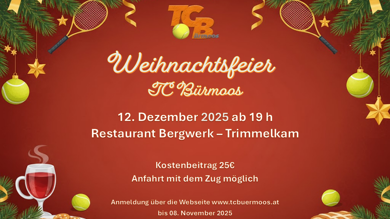 Wir planen heuer wieder ein Weihnachtsfeier. Diesmal in Trimmelkam, Restaurant Bergwerk, am 12. Dezember. Buffetpreis 25€.
