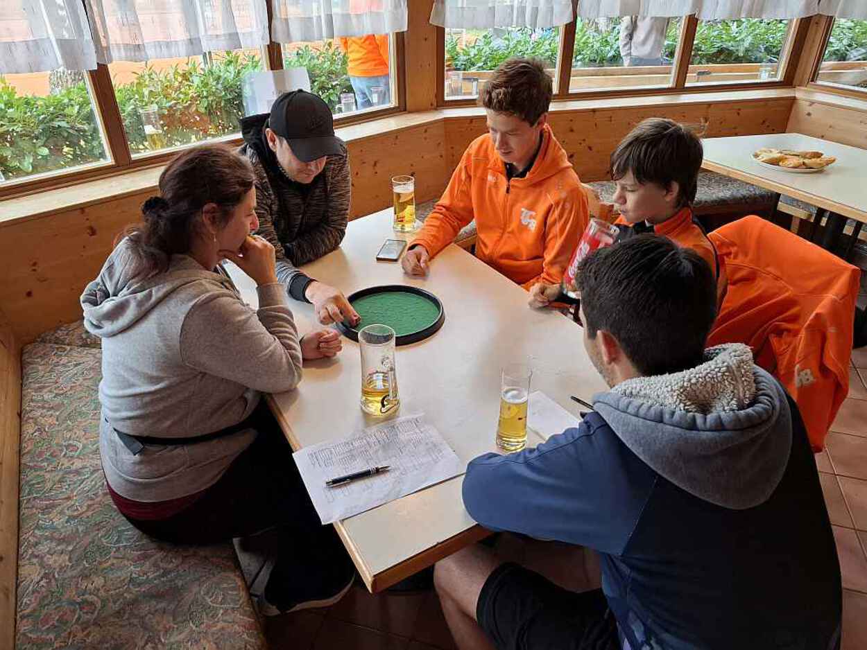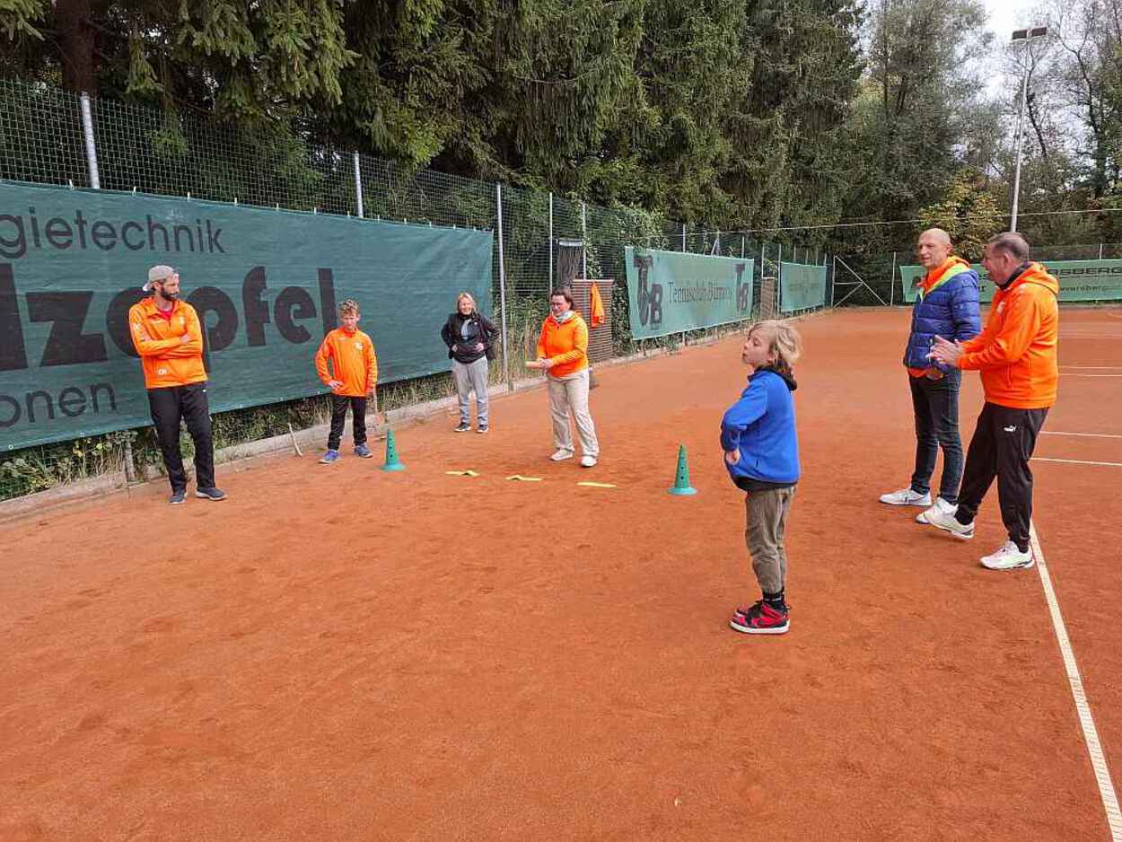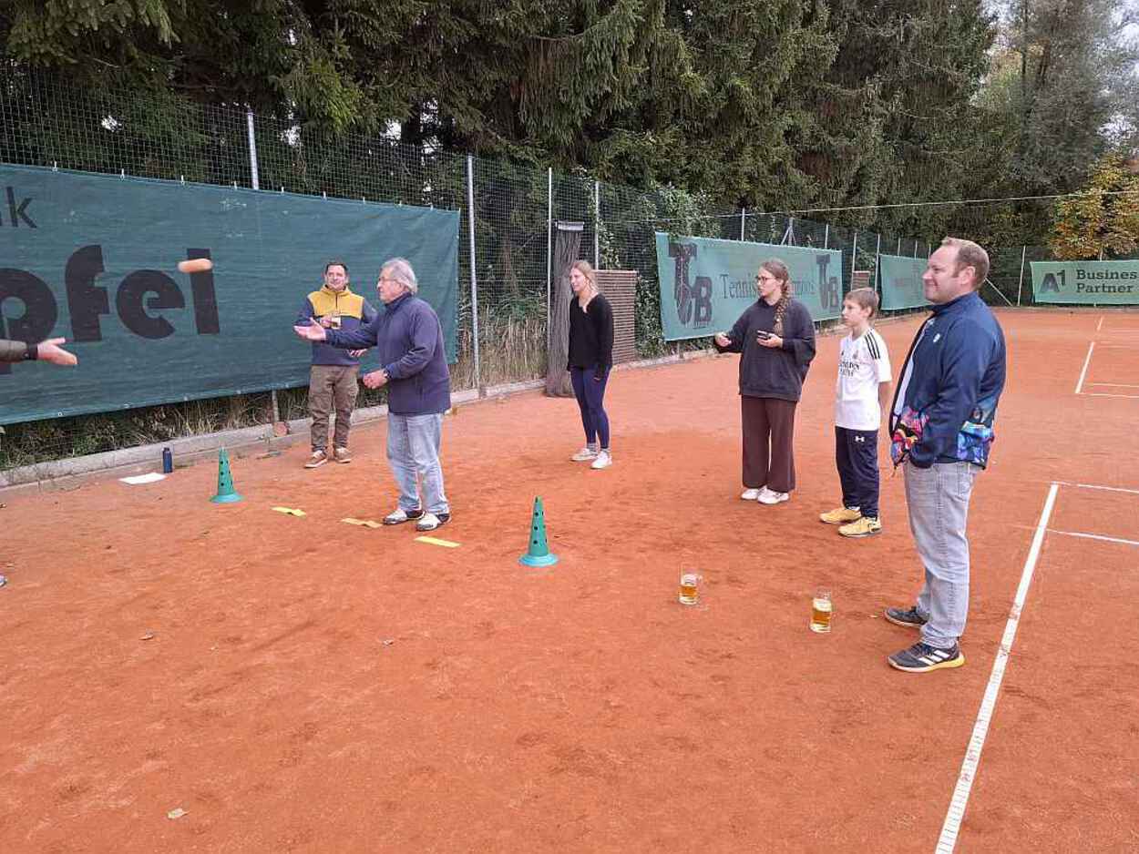 Fast pünktlich um 10:00 Uhr starteten wieder unsere traditionellen Gruppenspiele, bei denen Skills gefragt waren, die garantiert nichts mit Tennis zu tun haben und auf keinem Tennislehrgang gelehrt werden. In zusammengelosten Teams wurde bis in den späten Nachmittag um Punkte gekämpft – meistens aber auch darum, die Regeln der jeweiligen Station überhaupt erst zu verstehen.